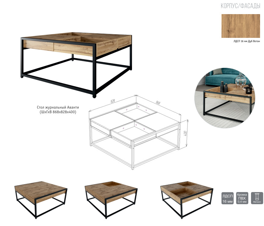 Габариты Ш*Г*В, мм: 868*828*400 мм