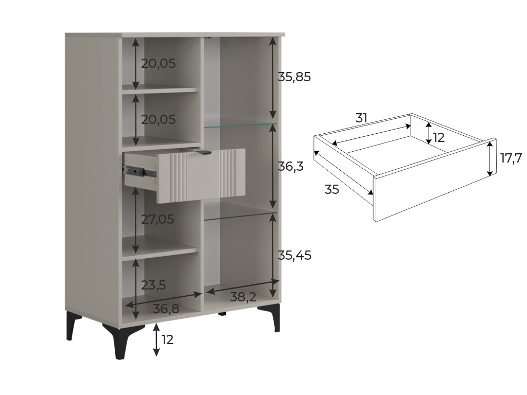 - Комод 2 Рич со стеклом