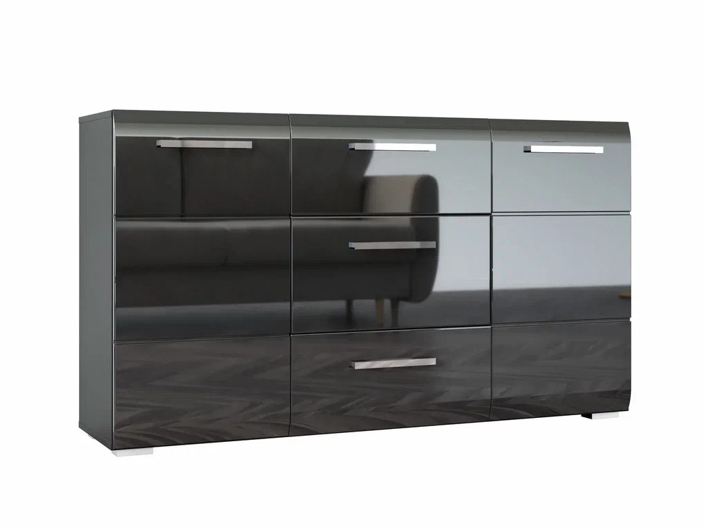 - Комод 3 ящика 2 двери без стекла Домино черный