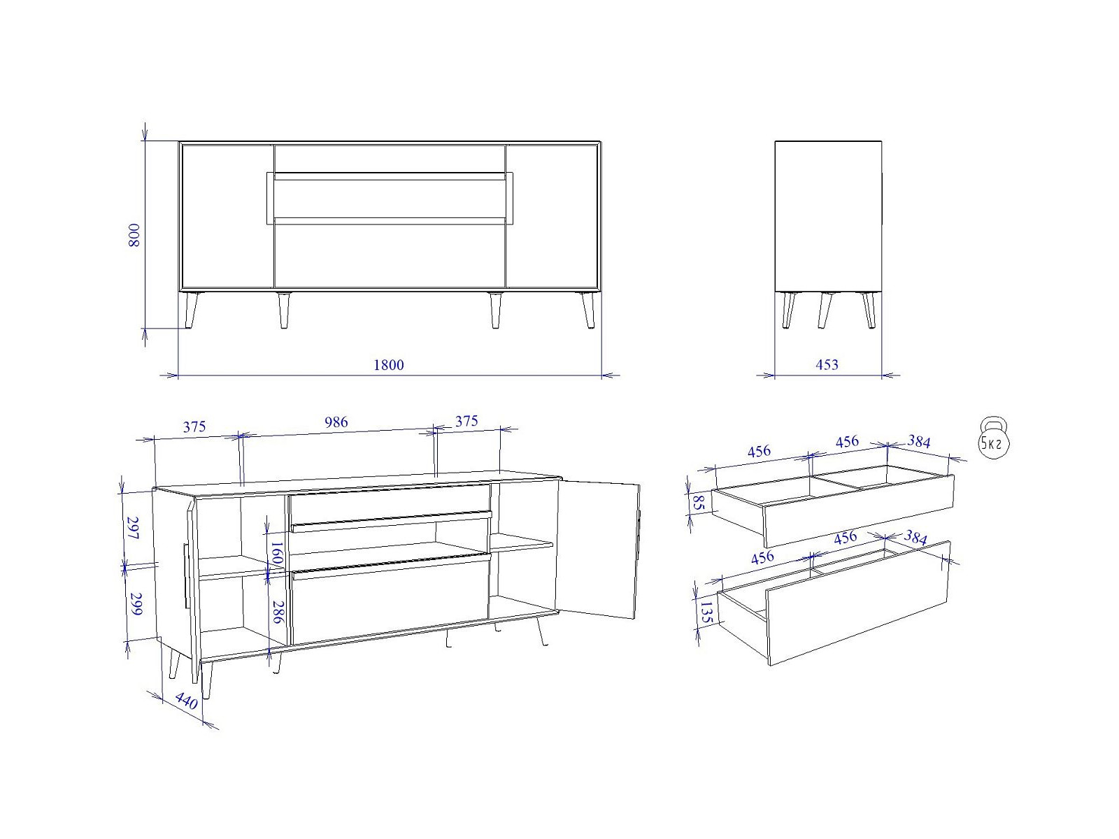 Макс.нагрузка на ящик (кг): 10