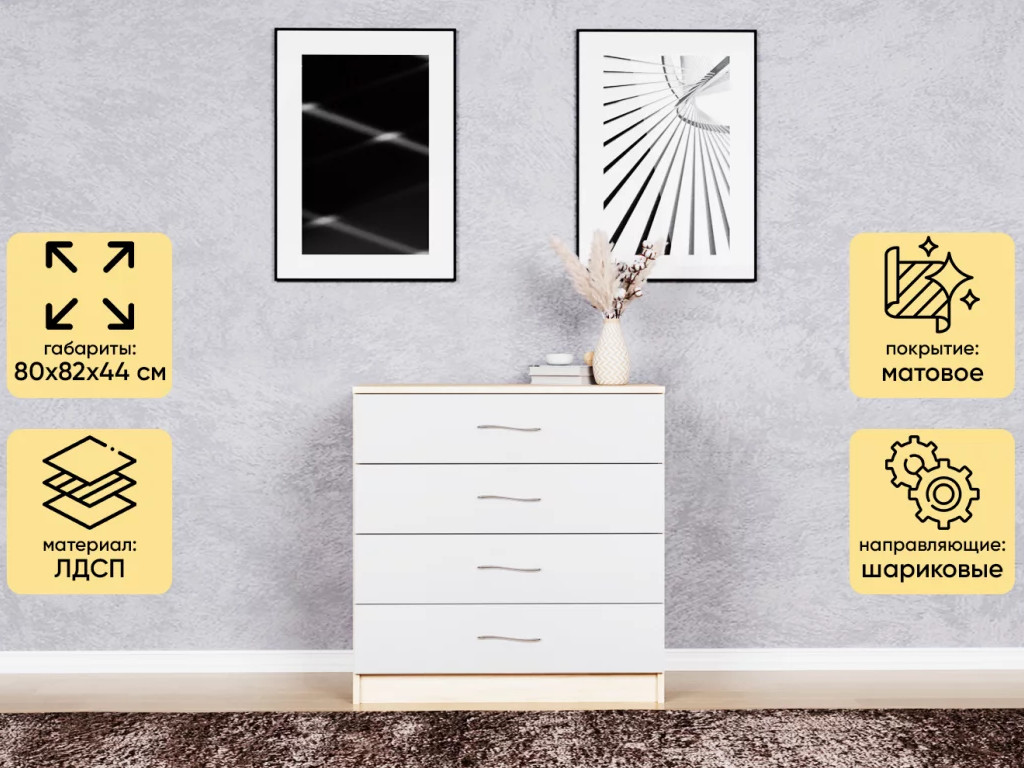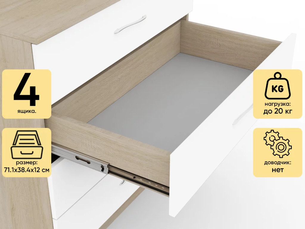 Комод Космос Нэо с 4-мя ящиками Дуб сонома-Белый