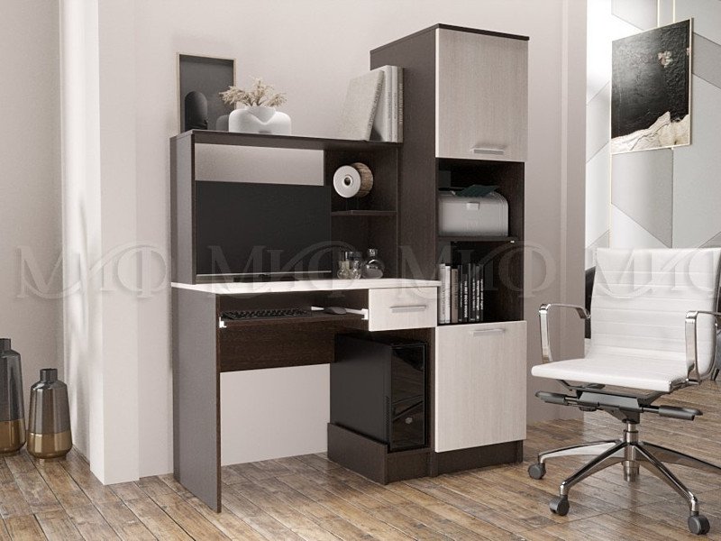 - Стол компьютерный №3 с пеналом Миф Дуб беленый/Дуб венге