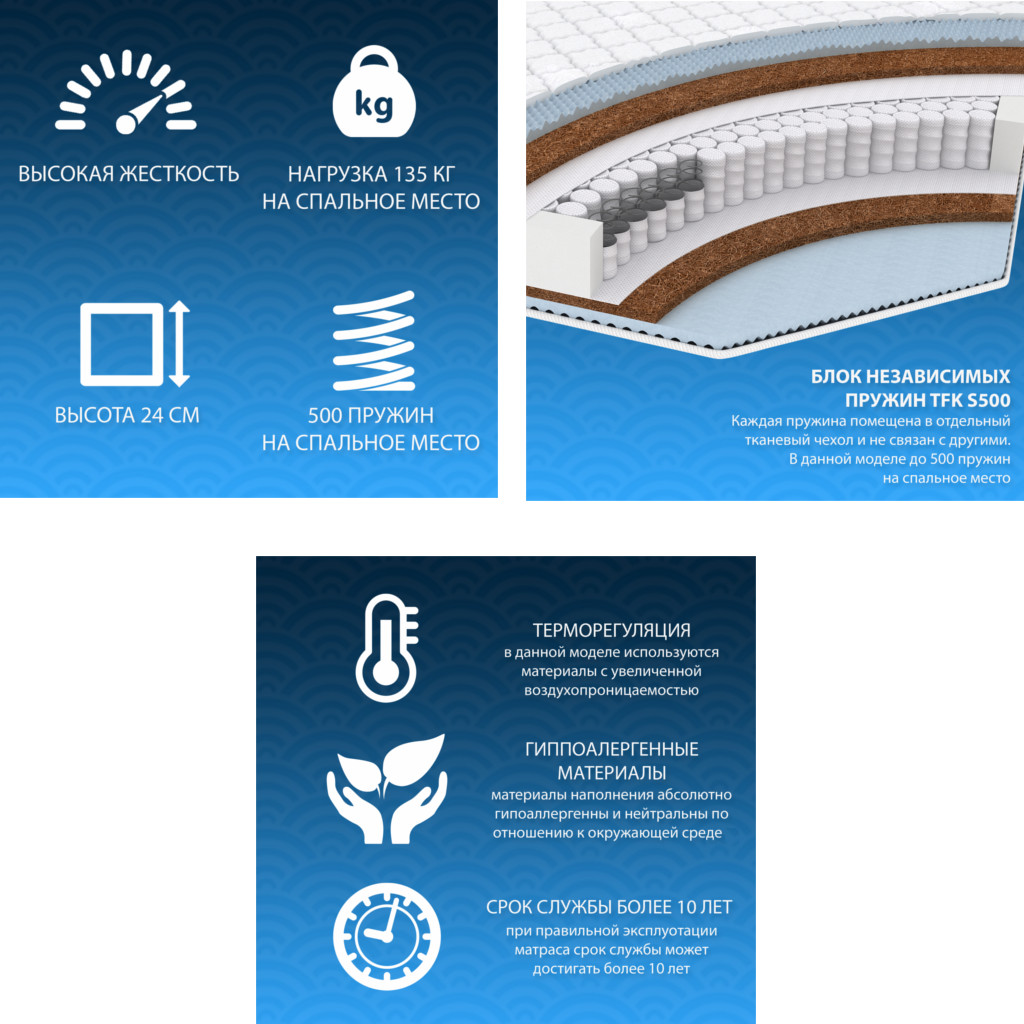 - Матрас Bio massage cocos double TFK шириной 1400 мм
