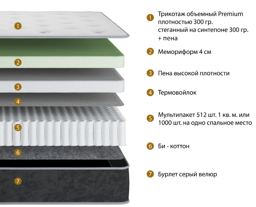 Односторонний матрас не требующий переворачивания, состав: