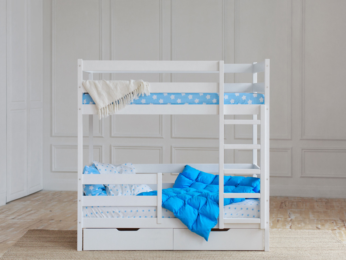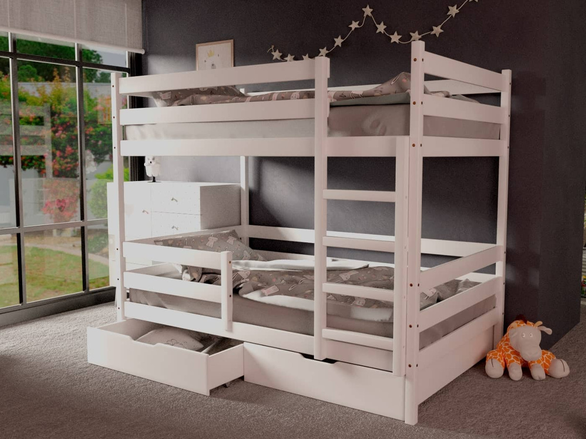 - Двухъярусная кровать без крыши белый 80х190 см с ящиками