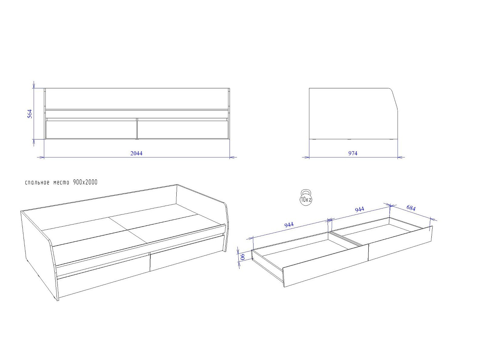 В кровати Каспер расположены два бельевых ящика на выкатных роликах.