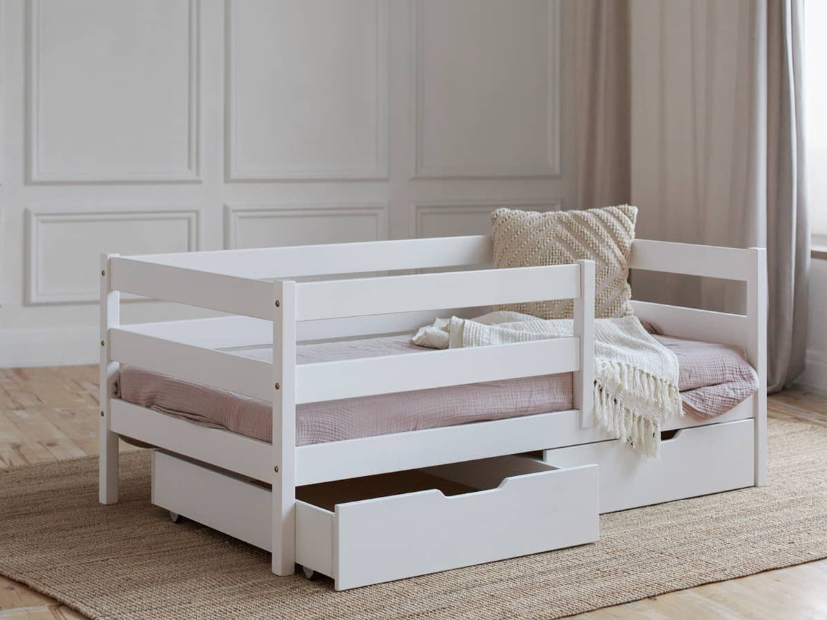 Кровать-софа детская с бортиками белый 80х190 см с ящиками