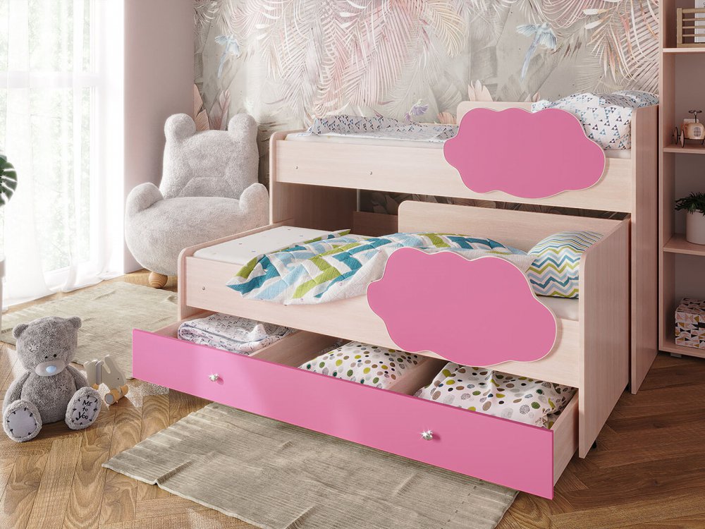 Кровать Соник с ящиком млечный дуб с розовым
