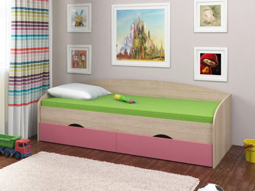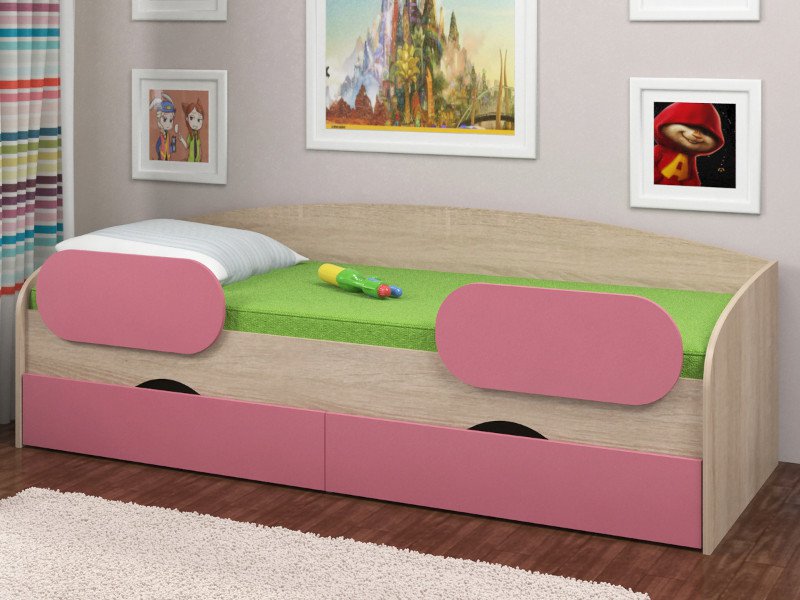 - Кровать Соня 2 сонома-розовый