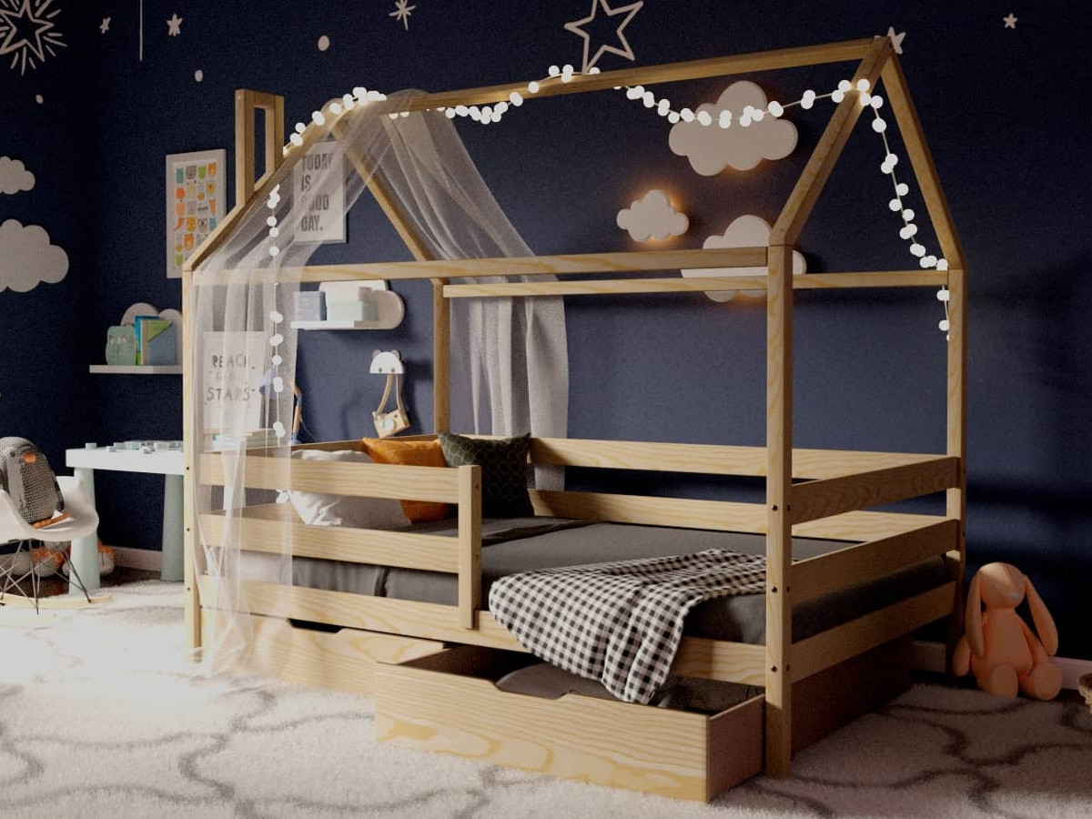 - Кроватка-Домик без покраски 80х160 см с ящиками