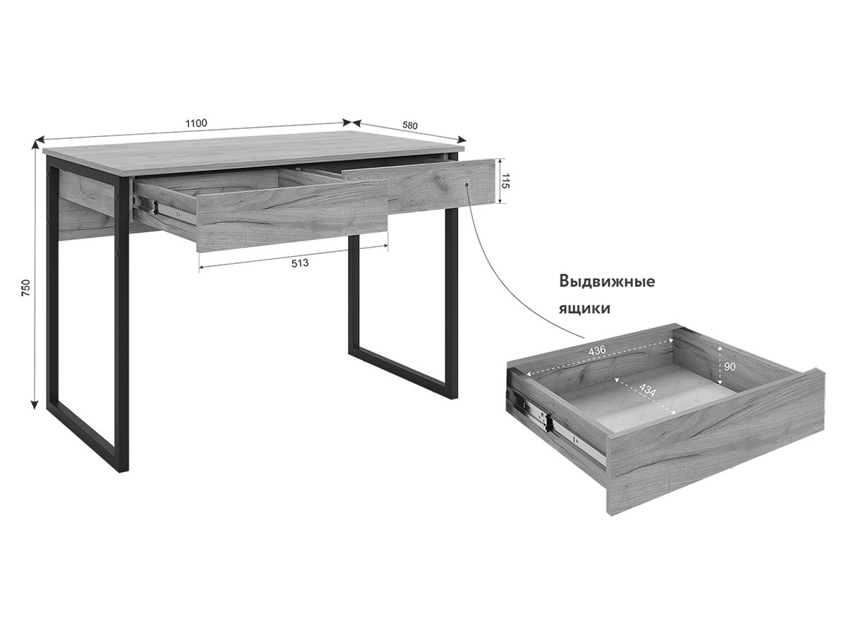 Стол Юниор белое дерево/черный муар