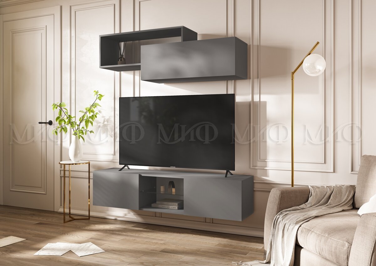 Цена за комплект: Тумба ТВ подвесная , Полка 2-х ярусная