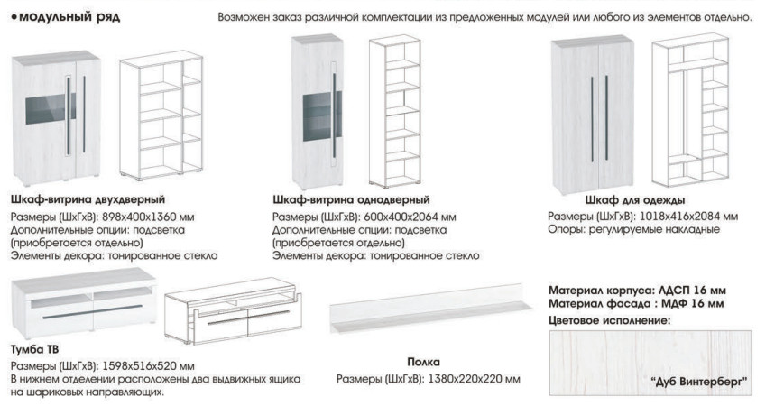 - Шкаф-витрина 1 дверный 600х400х2064 мм