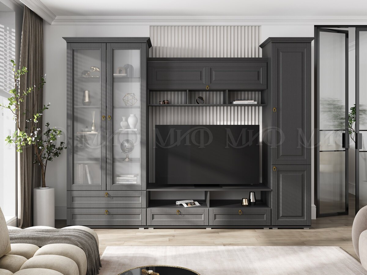 - Гостиная Престиж-1 Графит структурный