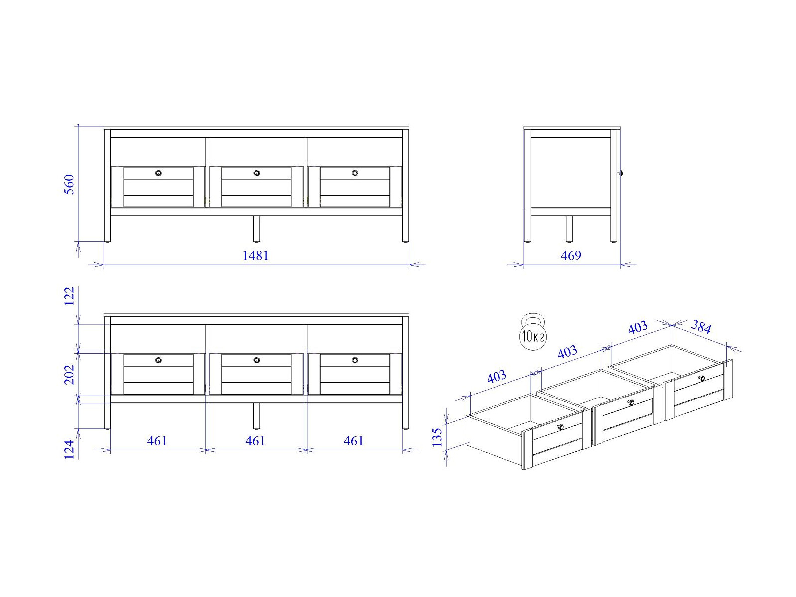 Макс.нагрузка на ящик (кг): 5