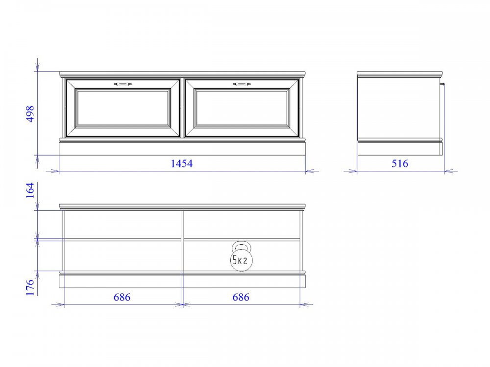 Размер ШхГхВ: 1454*516*498 мм