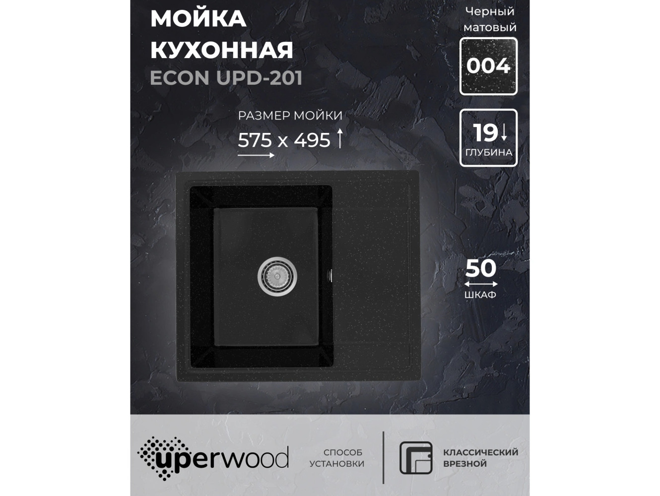 - Кухонная мойка Uperwood ECON UPD-201-004 черная матовая