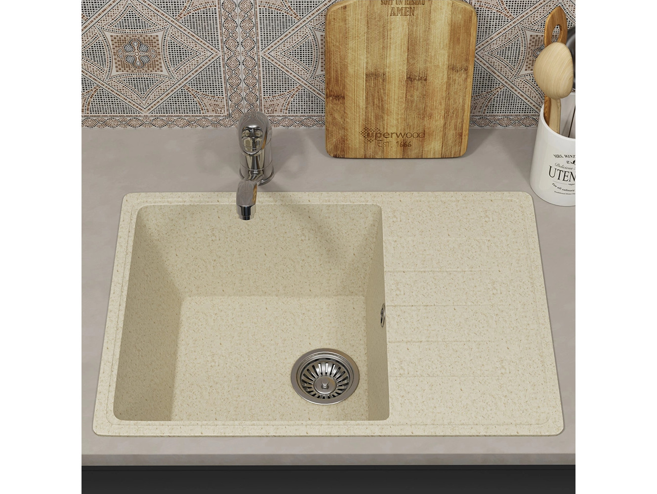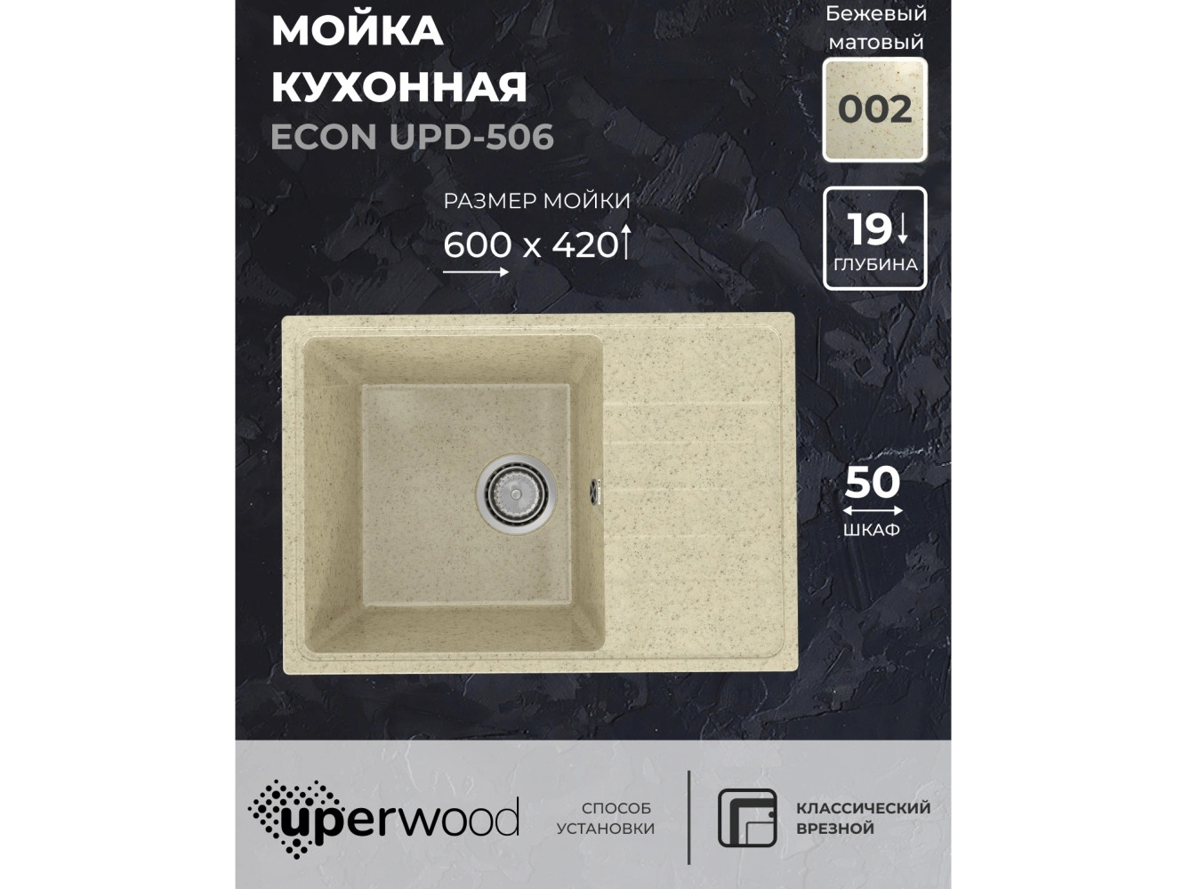 - Кухонная мойка Uperwood ECON UPD-506-002 бежевая матовая