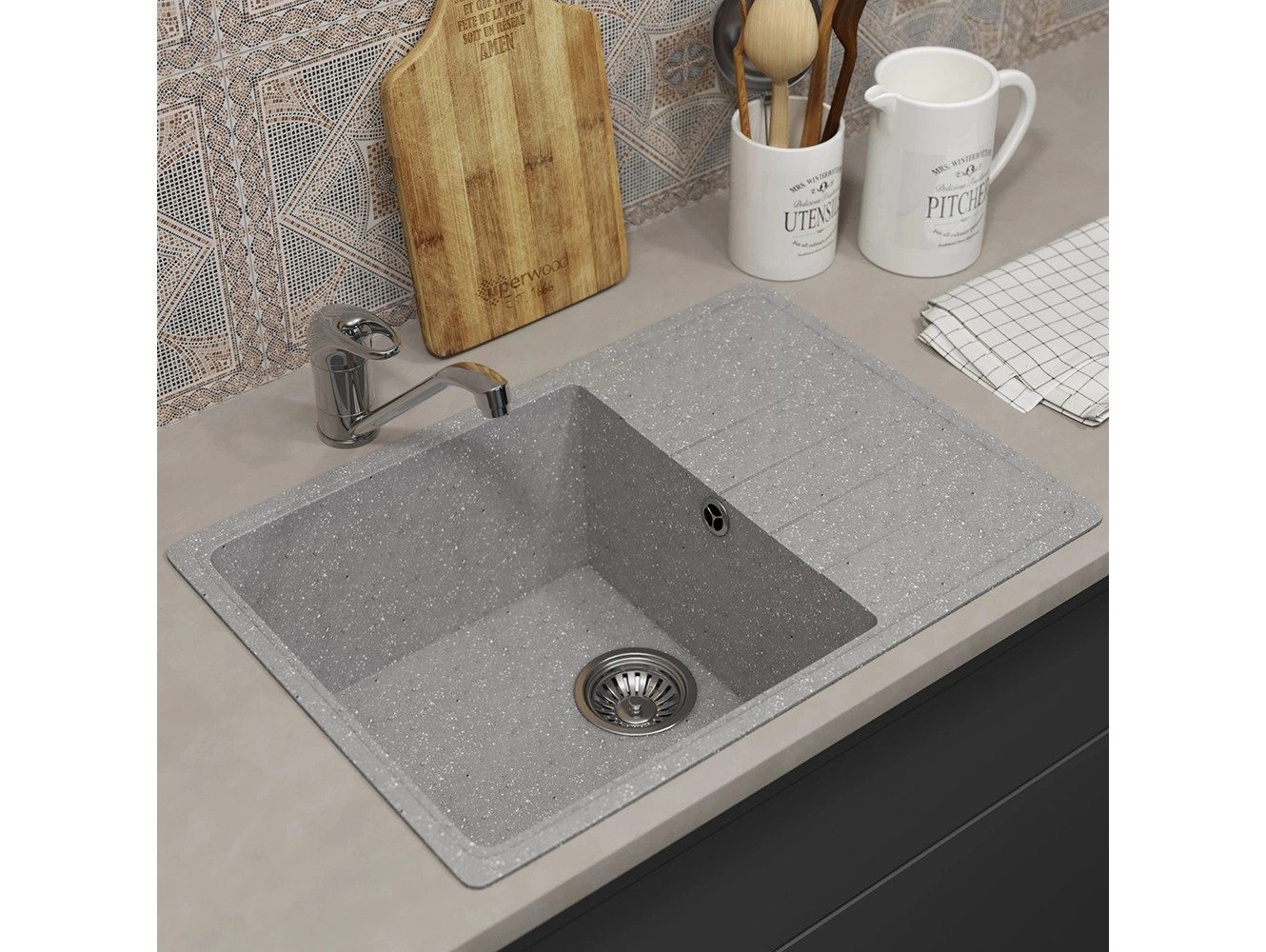 - Кухонная мойка Uperwood ECON UPD-506-003 серая матовая