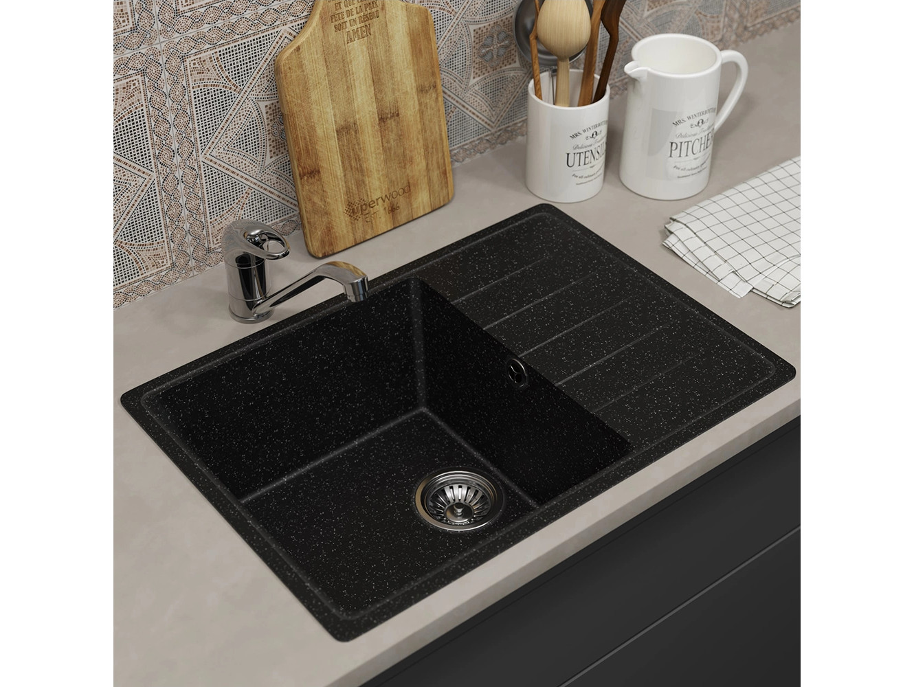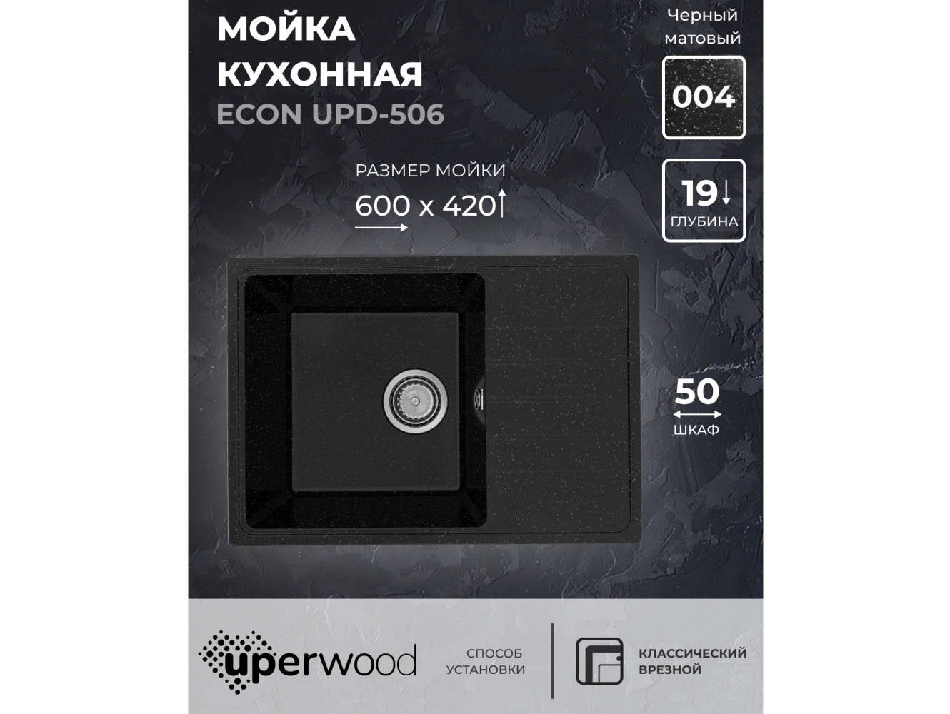 - Кухонная мойка Uperwood ECON UPD-506-004 черная матовая