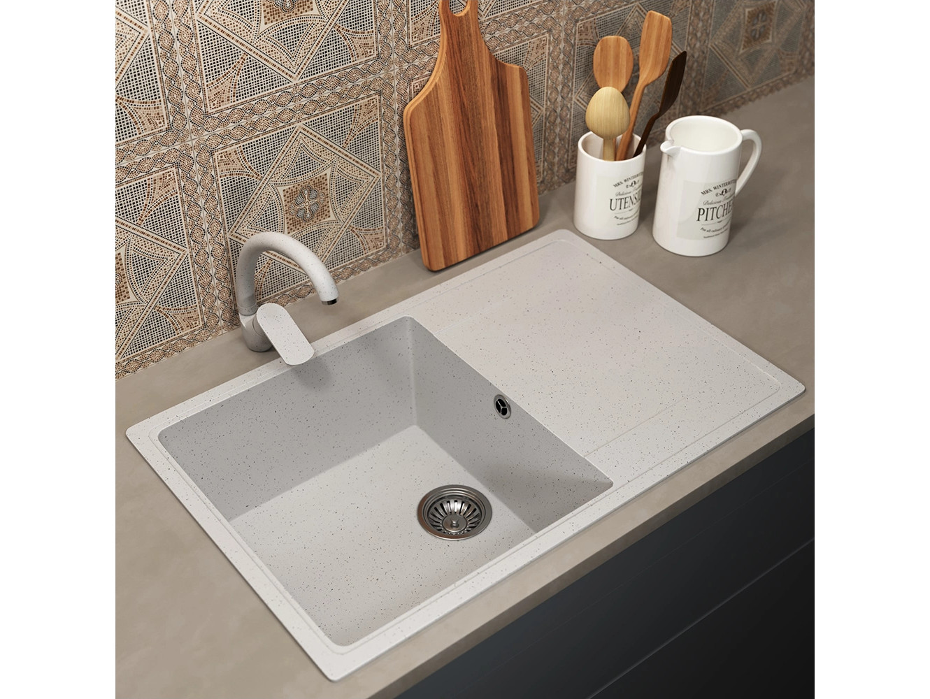 - Кухонная мойка Uperwood ECON UPD-507-001 белая матовая