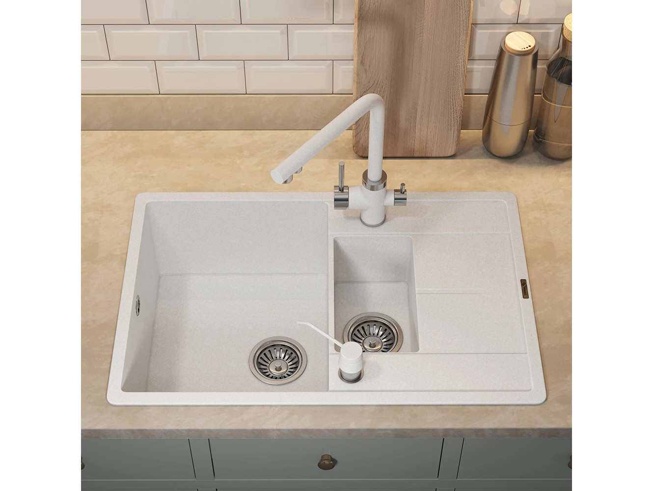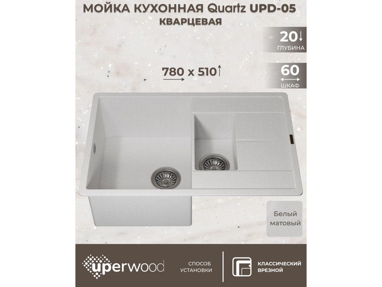 - Кухонная мойка Uperwood Quartz UPD-05-01 белая матовая