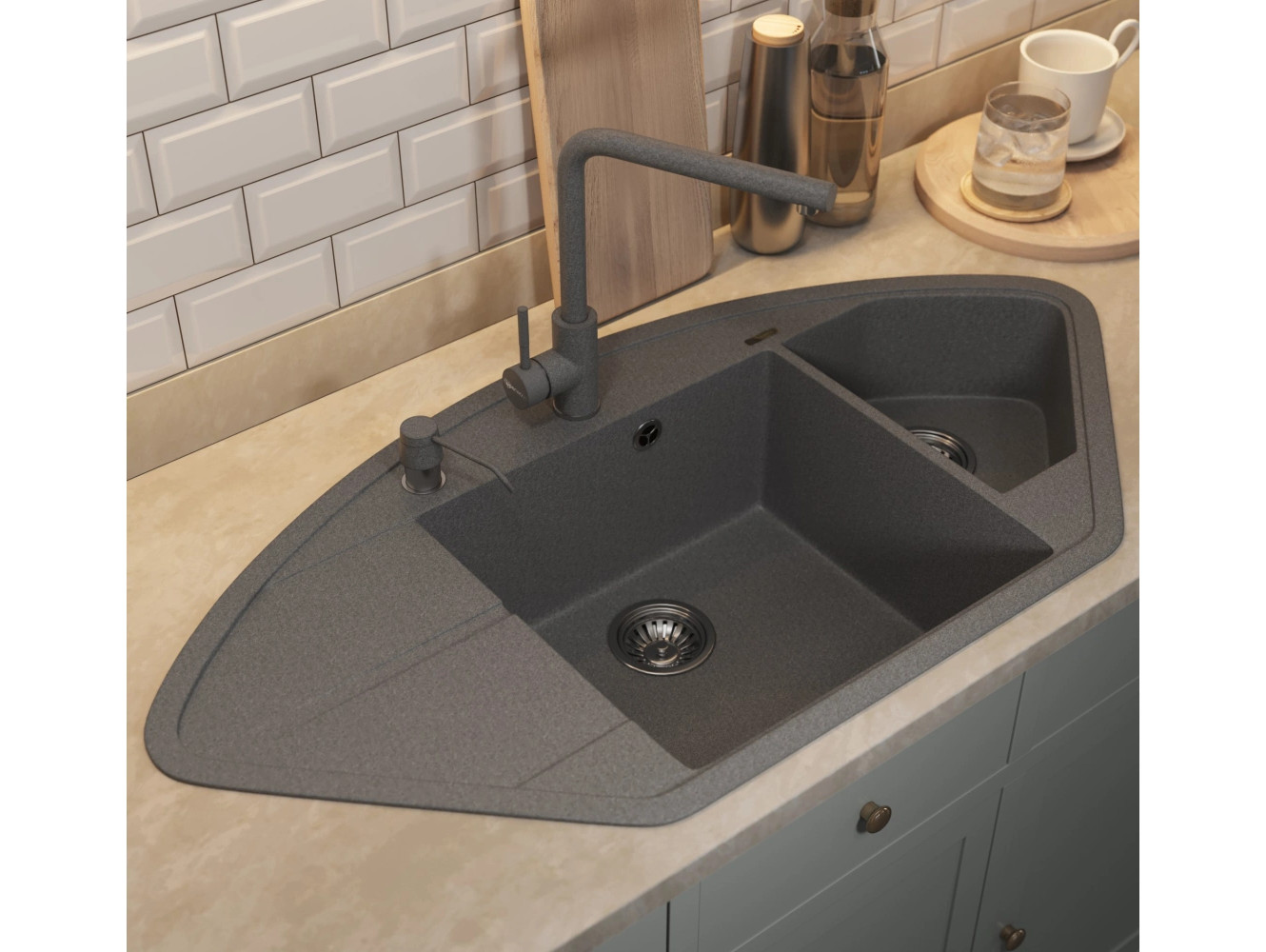 - Кухонная мойка Uperwood Quartz UPD-06-03 серая матовая