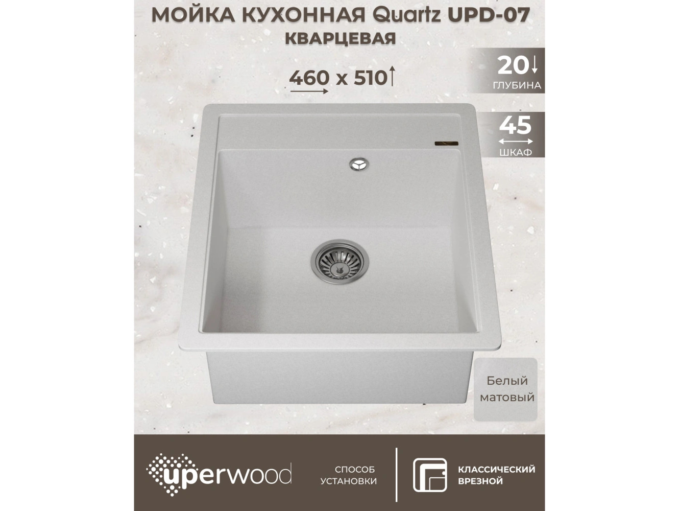 - Кухонная мойка Uperwood Quartz UPD-07-01 белая матовая