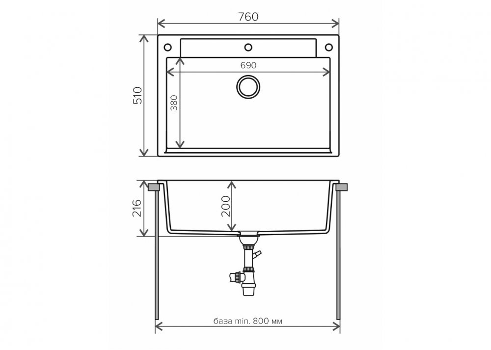 Длина мойки, мм: 760