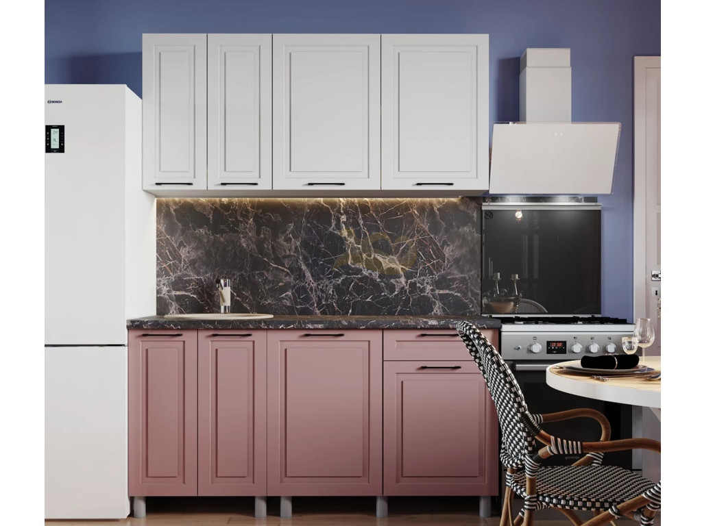 - Кухня Аликанте 1600 МДФ Белый снег/пудра без столешницы