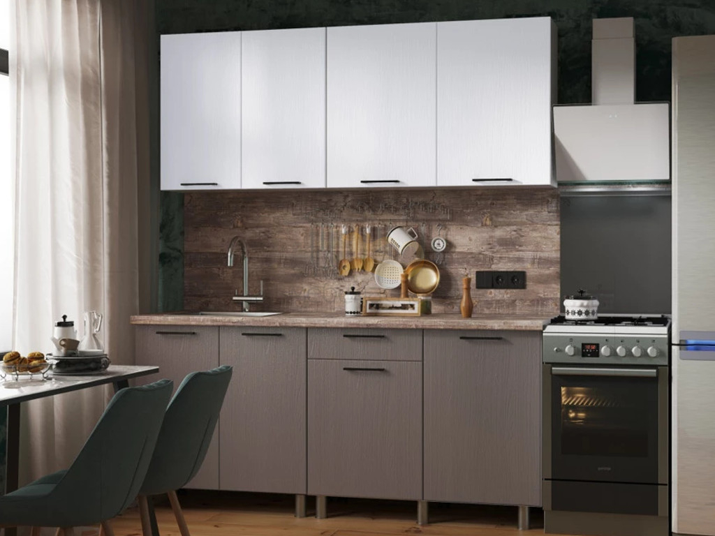 Кухня Хилтон 1800 МДФ Клен Белый/Клен Серый без столешницы