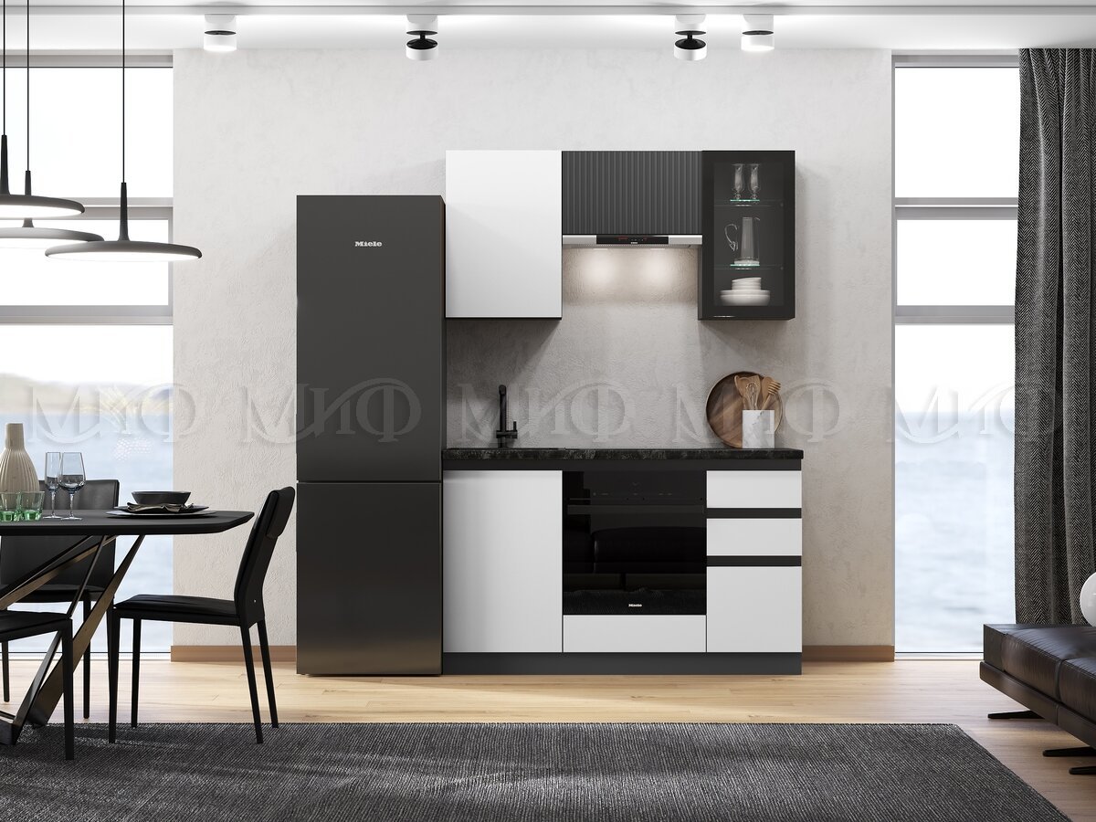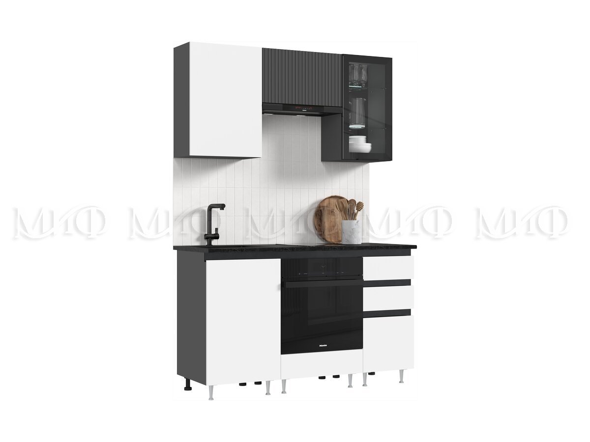 Кухня Техно-6 1500 мм Графит/Белый снег софт