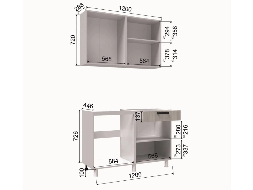 - Кухня Вандт 1200 МДФ Арктик без столешницы