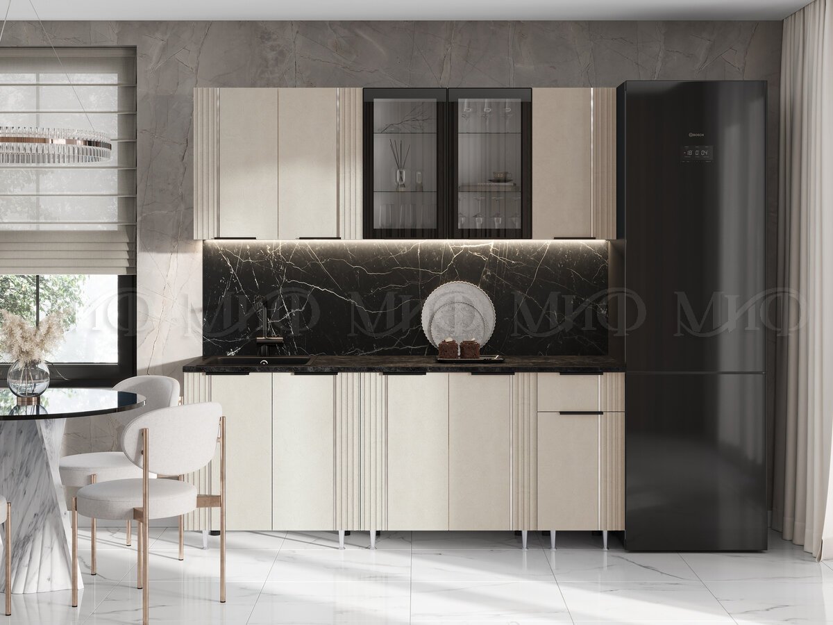 - Кухня Виктория 2000 мм Пластер Аворио/Белый (Кастилло темный)