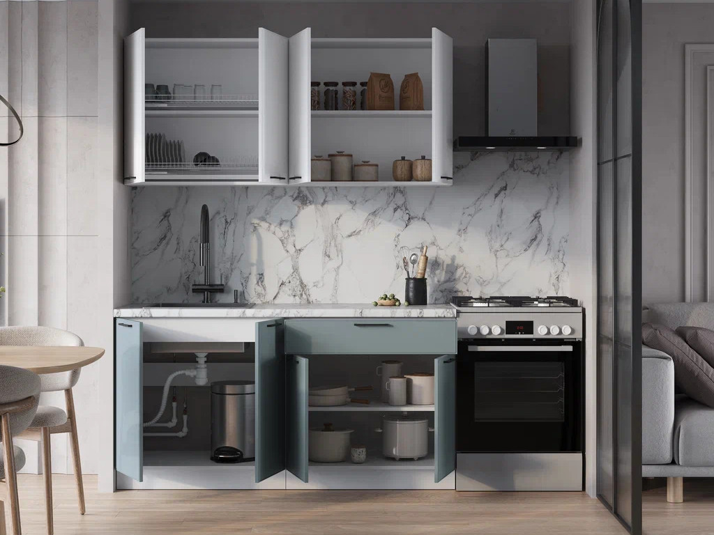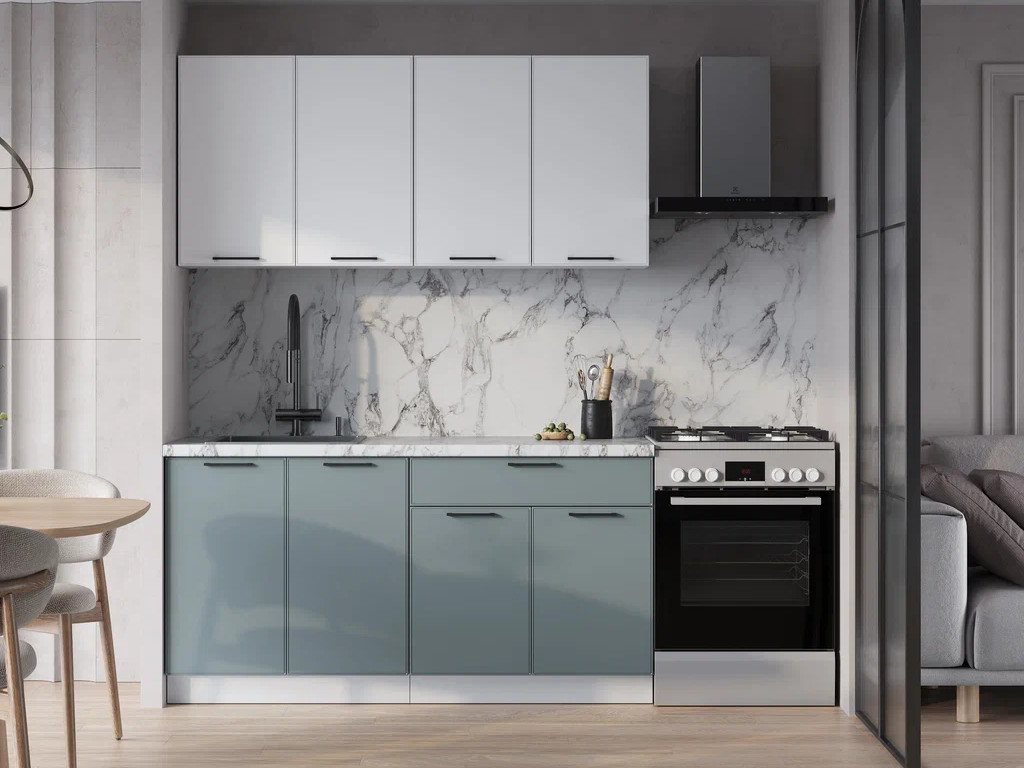 - Верхние Фасады Белый Софт / Нижние фасады Бирюзовая мята
