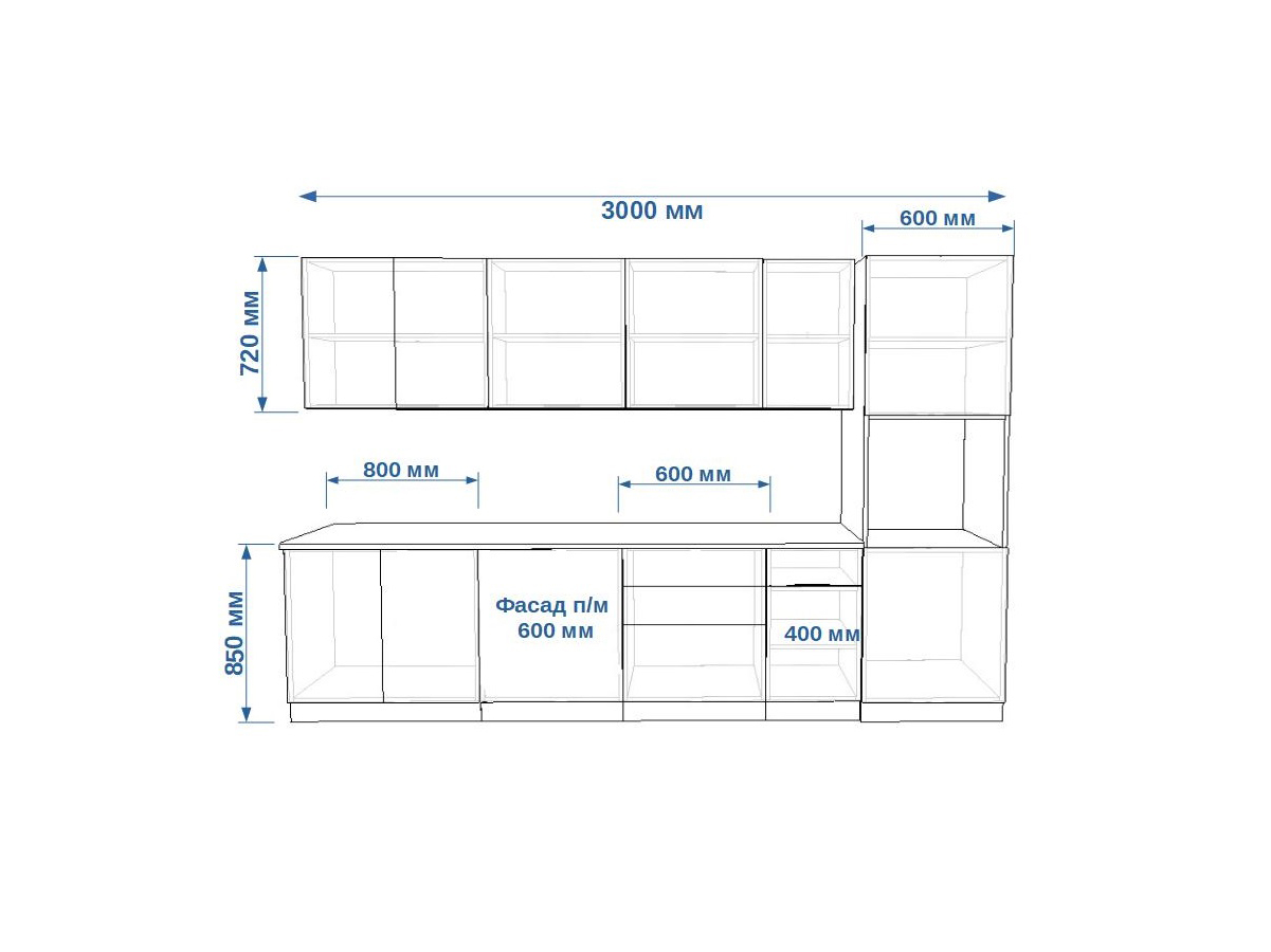 - высота верхних шкафов 720 мм