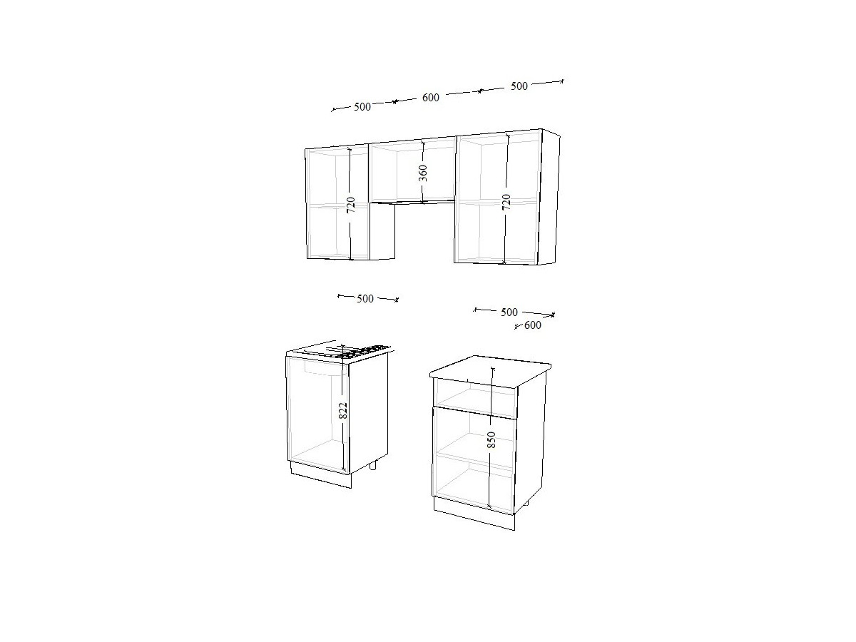 Кухонная мойка, стеновая панель, посудосушитель, планки для столешницы в комплект не входят.
