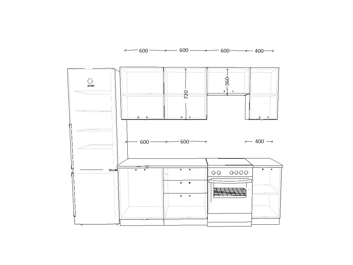 Кухонная мойка, стеновая панель, посудосушитель, планки для столешницы в комплект не входят.