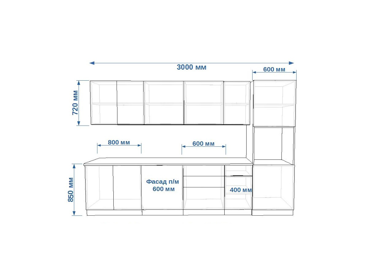 - Кухонный гарнитур арт 16 Лайн Тальк Обсидиан 3000 мм
