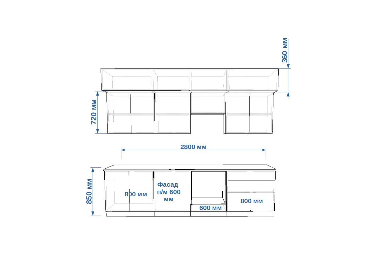 - Кухонный гарнитур арт 17 Фаска Обсидиан Тальк 2800 мм