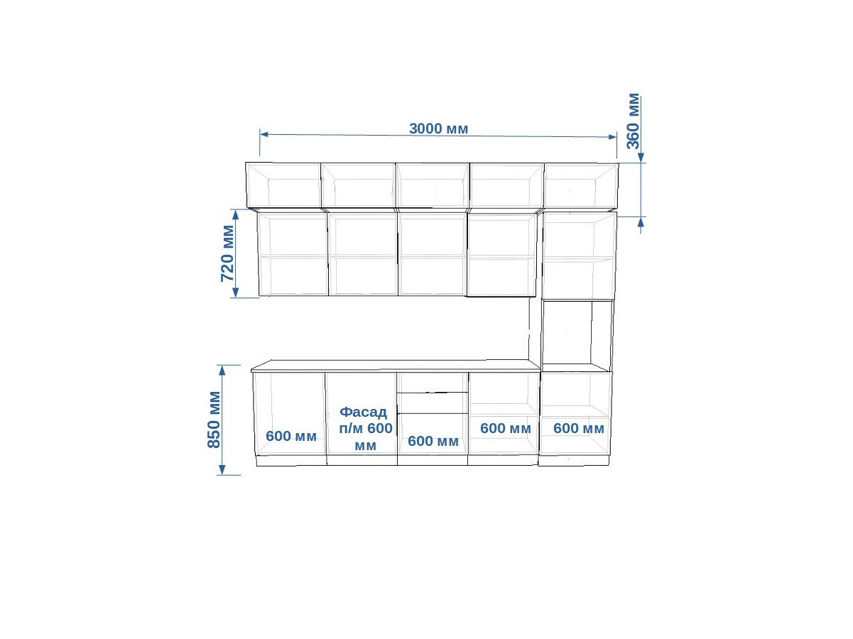- Кухонный гарнитур арт 21 Фаска Тальк Пикрит 3000 мм