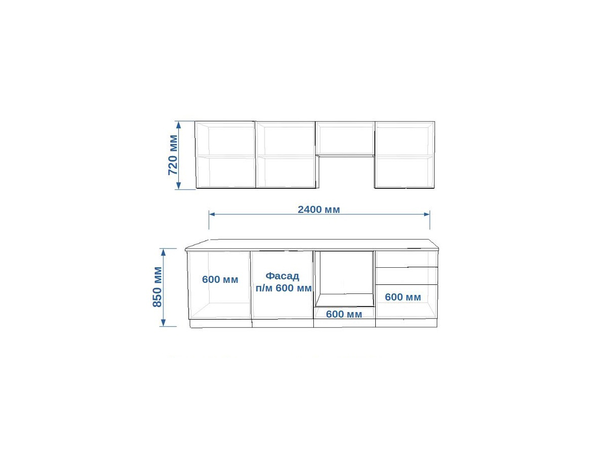 - высота верхних шкафов 720 мм