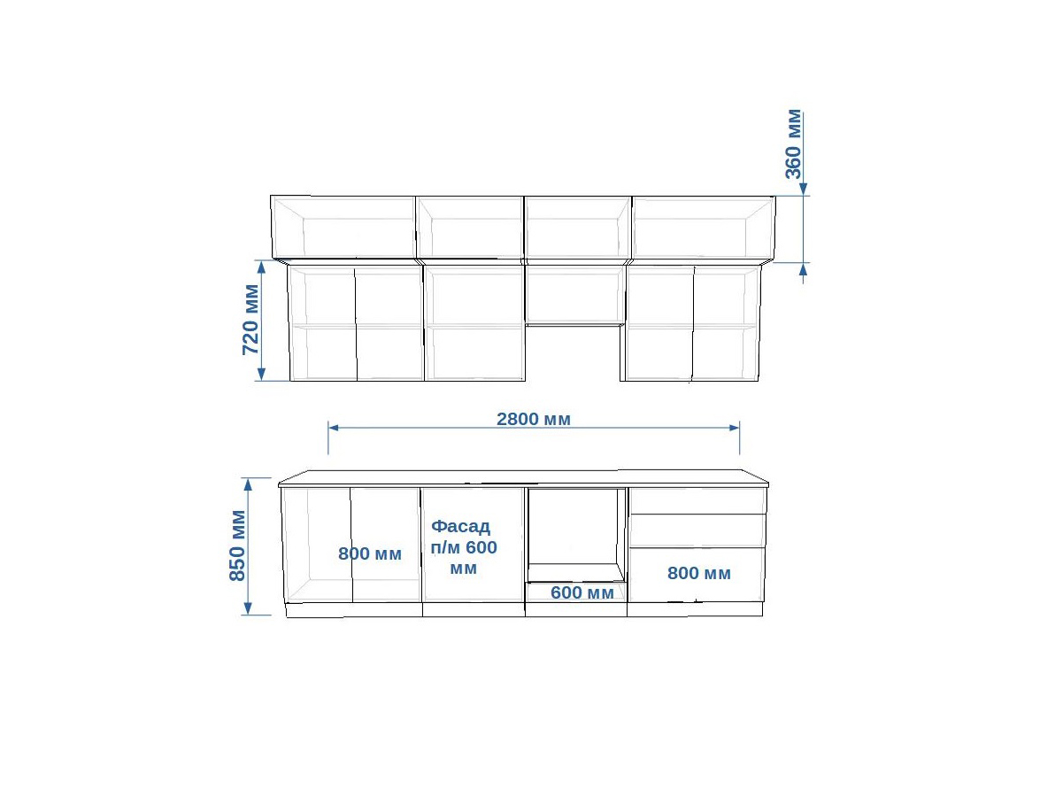 - высота верхних шкафов 720 мм