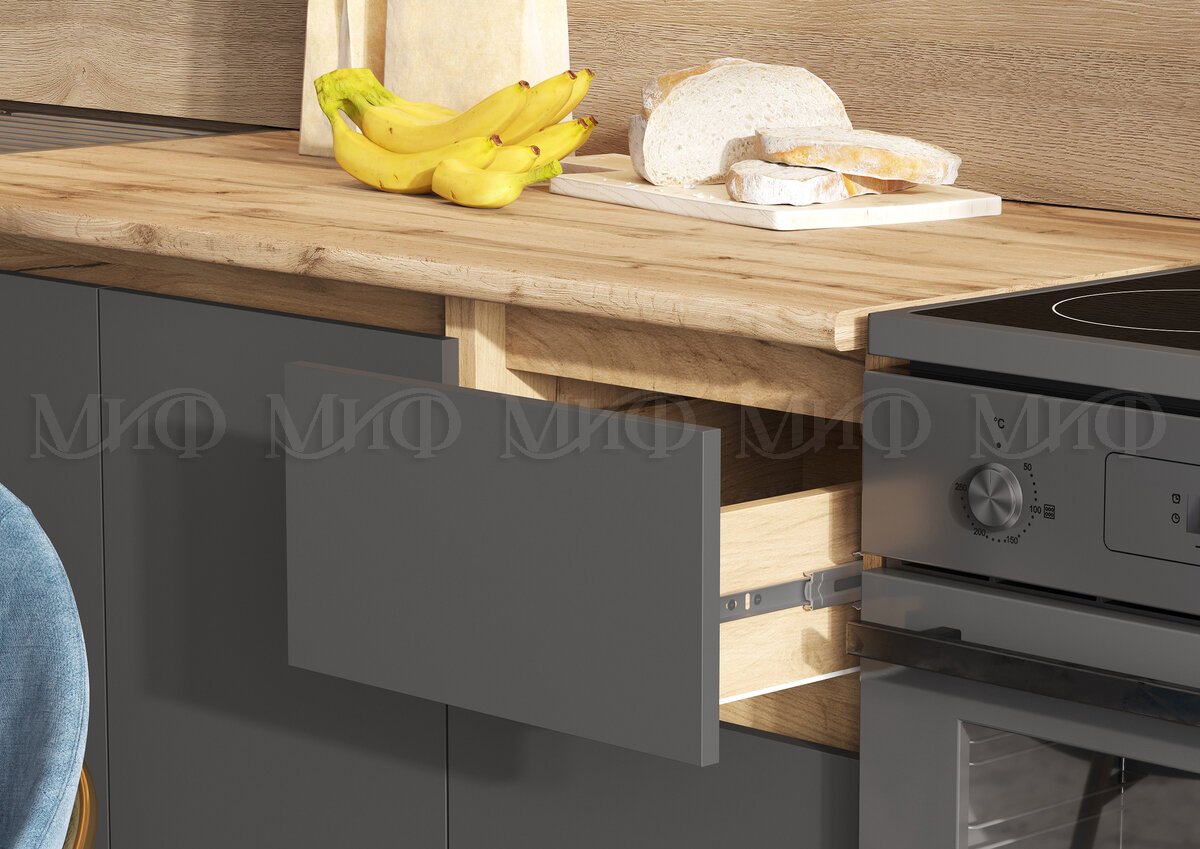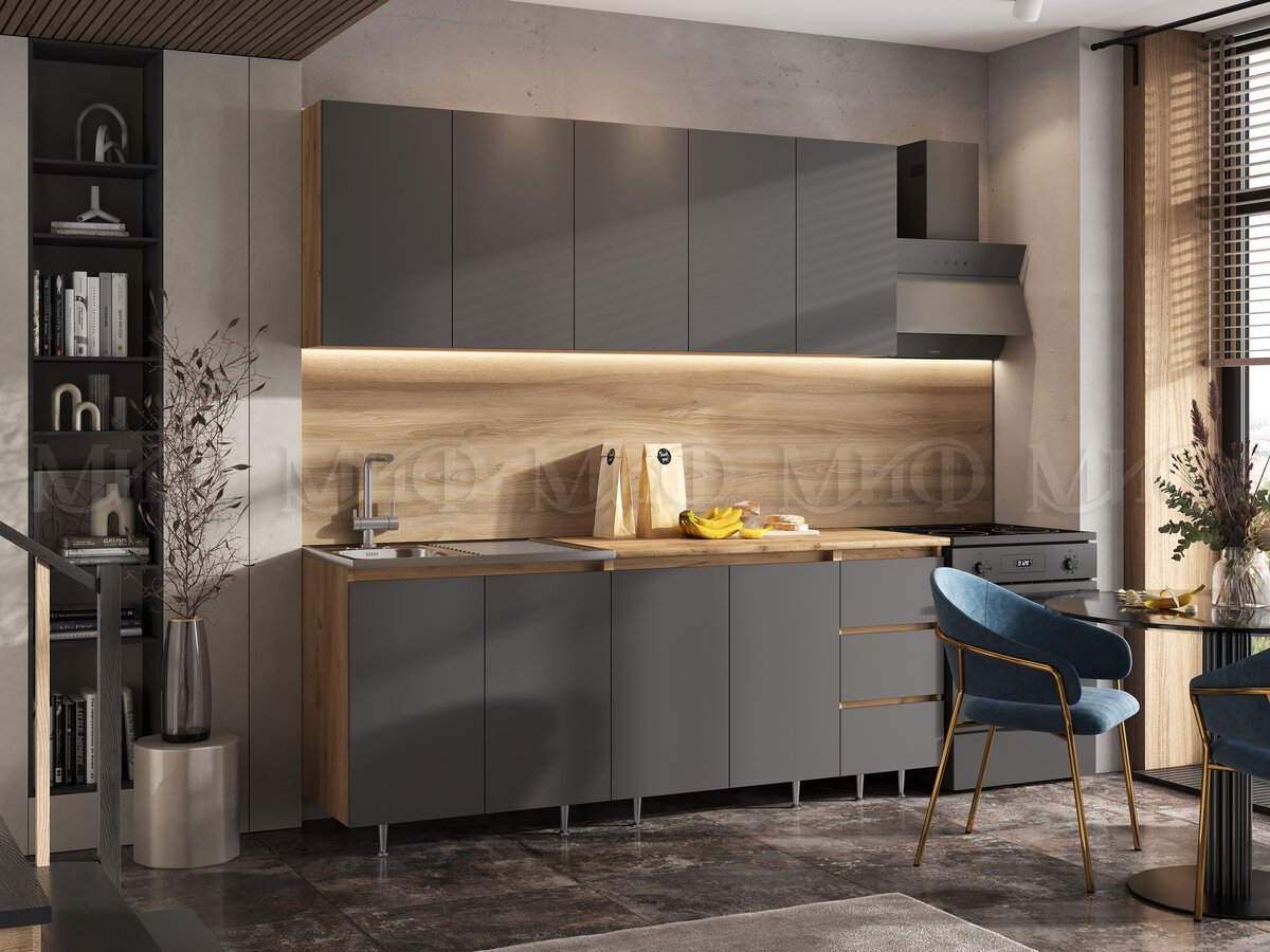 - Кухонный гарнитур Челси 2000 мм Графит/Дуб Крафт