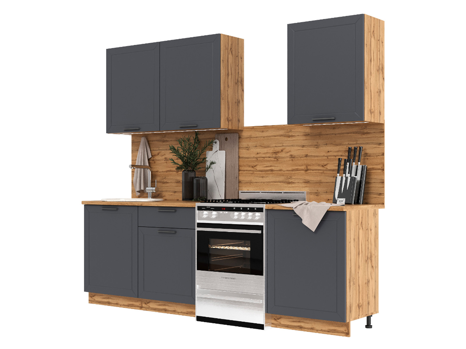 - Кухонный гарнитур Глетчер 1800 мм МДФ Вотан/Маренго Силк