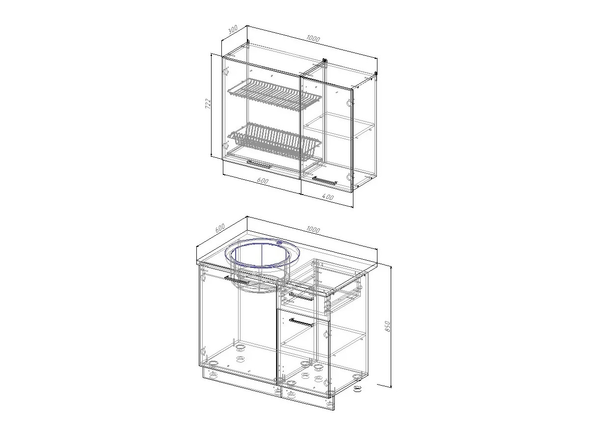 - Столешница: ЛДСП 26мм со скругленным краем (в пластике)