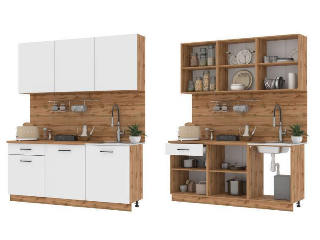 - Кухонный гарнитур Лайма ЛДСП 1800 мм Дуб Вотан-Белый
