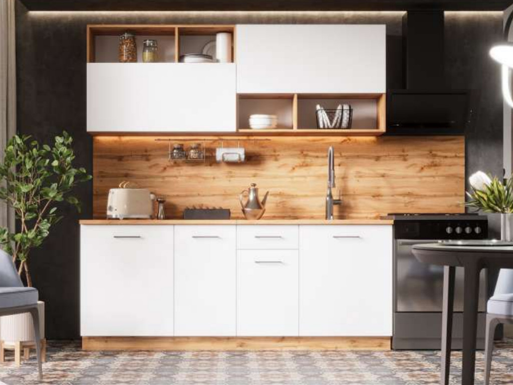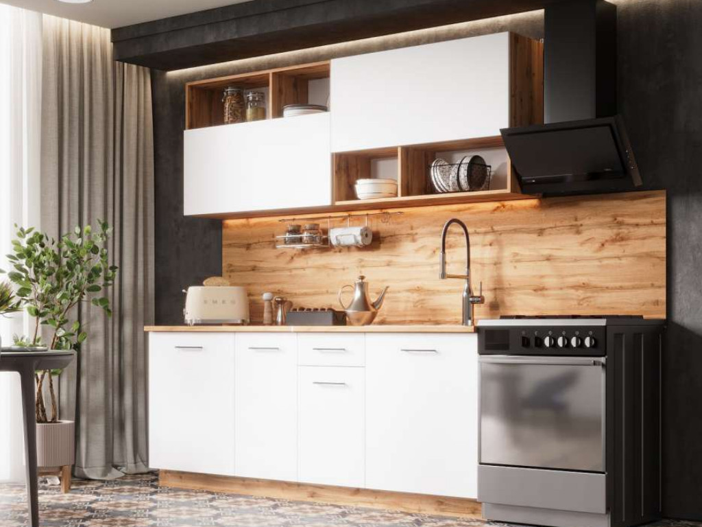- Кухонный гарнитур Лайма ЛДСП 2000 мм Дуб Вотан-Белый