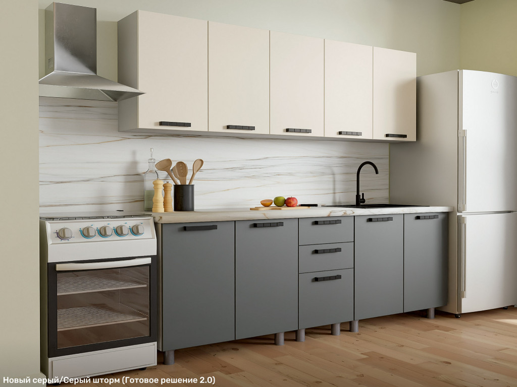Кухонный гарнитур Орешник 2000 мм Матовый Новый серый-Серый шторм