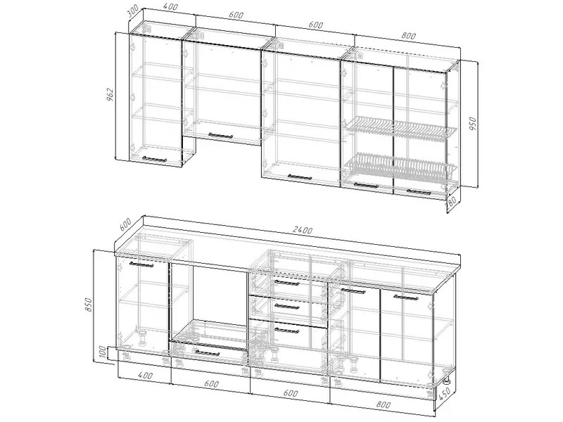 Ширина кухни: 2400 мм